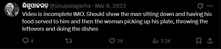 Amidst all this is also the arrival of the tradwife trend, where women content creators of the internet adulate the joys of traditional homemaking and cooking roles, dressed in beautiful outfits with impeccable skin and hair (and making a lot of money off this content). It's alluring and hard to look away from. Work is hard and unrewarding and the sheer visual escape that content offers also speaks to the parts of us who just want joy and pleasure. The every woman can be a Domestic Goddess trope has been around for a while, but has been intensified by the tradwife trend. I recommend reading Rohita Naraharisetty’s article on the same, where she examines the complex layers of the tradwife trend. One of the most important aspects of Naraharisetty’s commentary is the discussion of the ‘manosphere’. A recent video that made the rounds on social media is a very telling example of this: the reaction from men made it clear that it was catering to the male gaze, with a lot of men posting heart emojis while other remarks signalled the patriarchal expectations perpetuated by the manosphere.